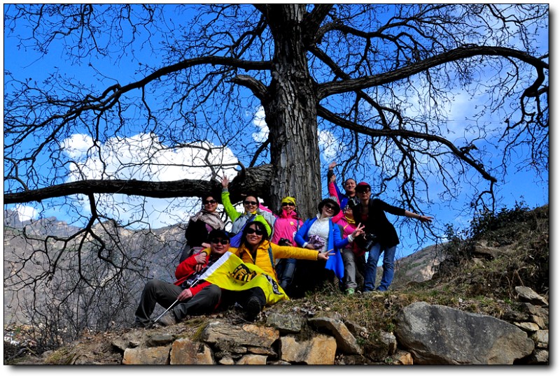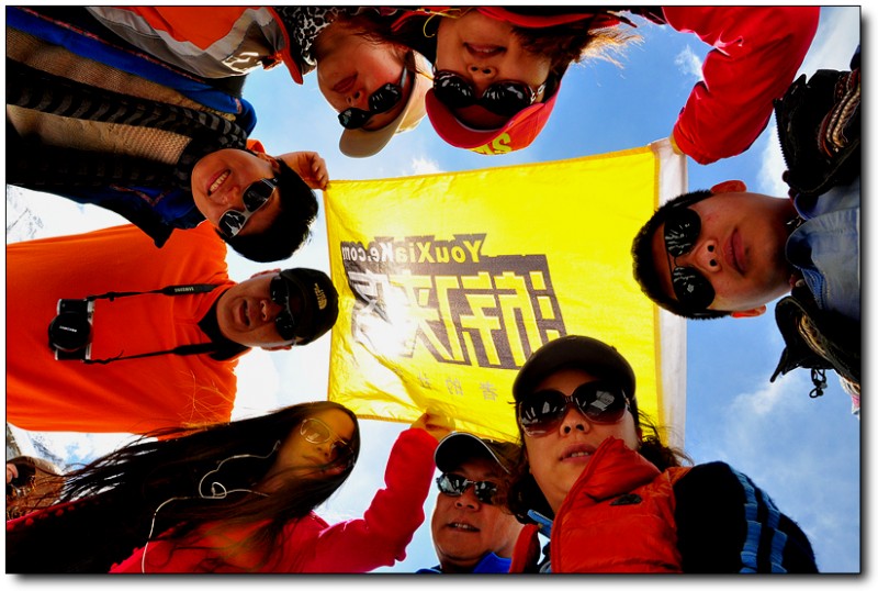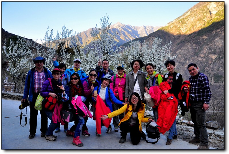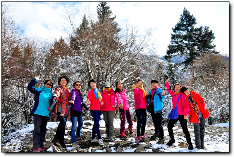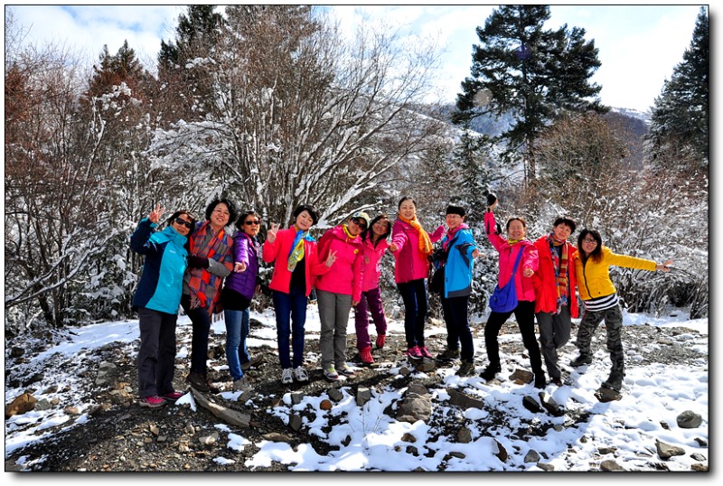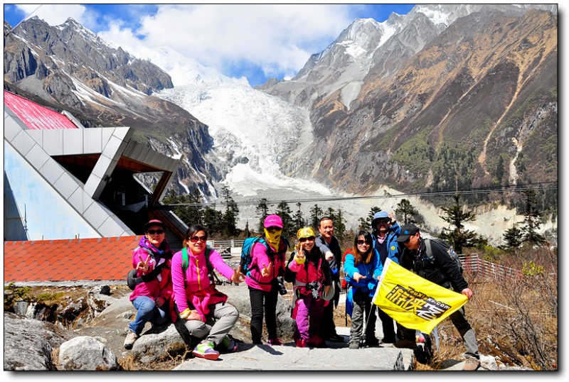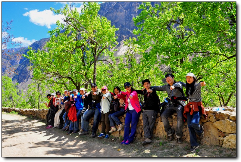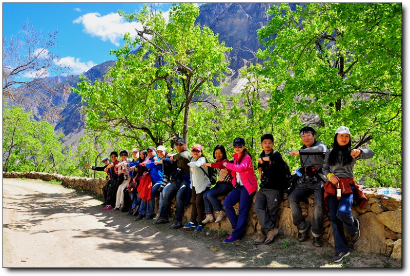 刚下车到3号营地,看到后面的雪山,大家就忍不住了,集体照自然不可少了