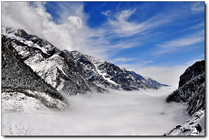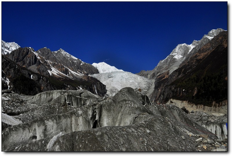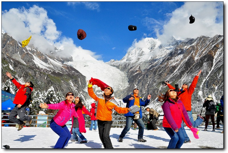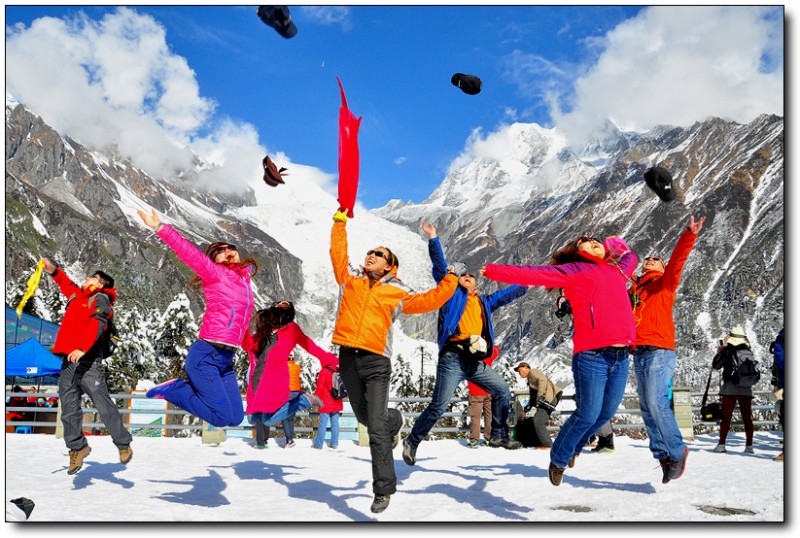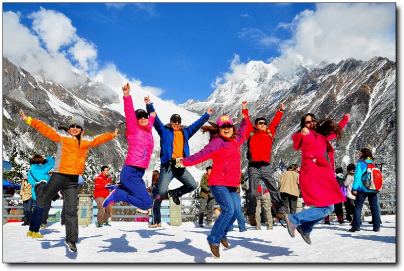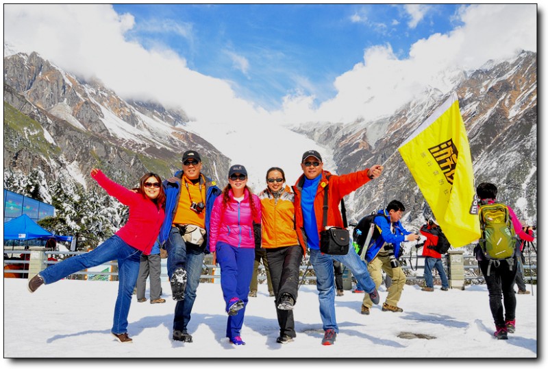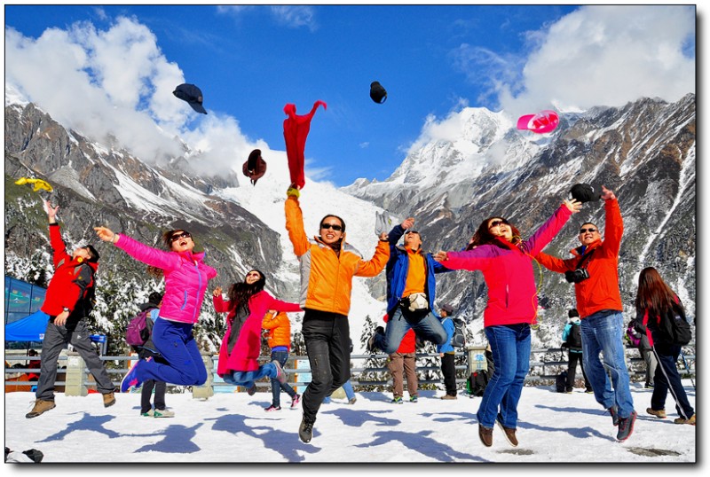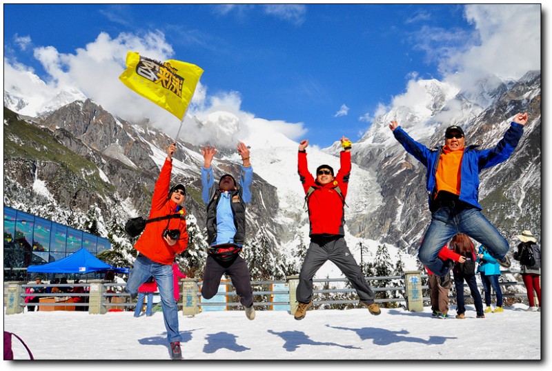 海螺沟--这个季节去,不是它的旺季,在背阴处,一颗颗杜鹃花还没有长出花蕾,我想当漫山开满杜鹃花时,加上蓝天,配上蓝天,放眼望去我们的贡嘎主峰,是何等的美丽。也许是因为雪山看多了,也许是走得地方也多了,越来越不喜欢拥挤的人群,反而更加喜欢这个相对的淡季,只有我和我的那群疯子队员们,可以肆无忌惮的跳、可以大声地尖叫......