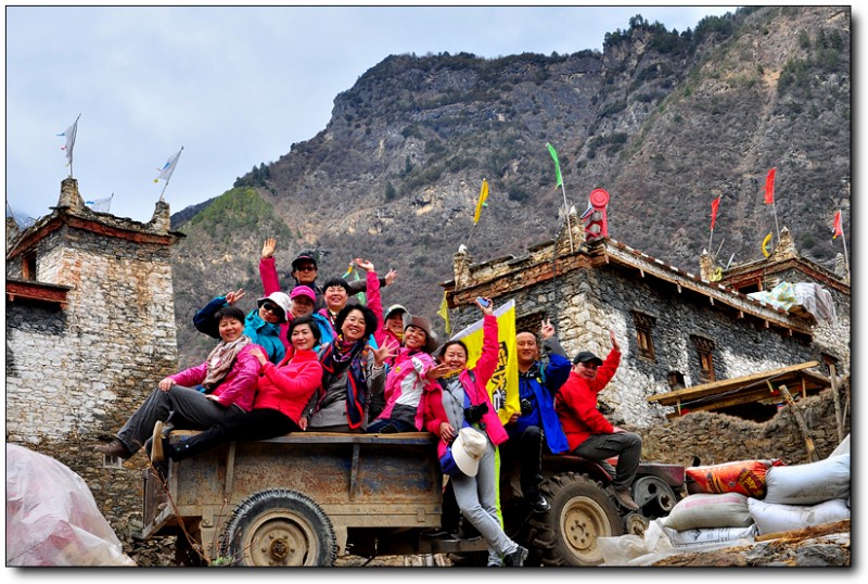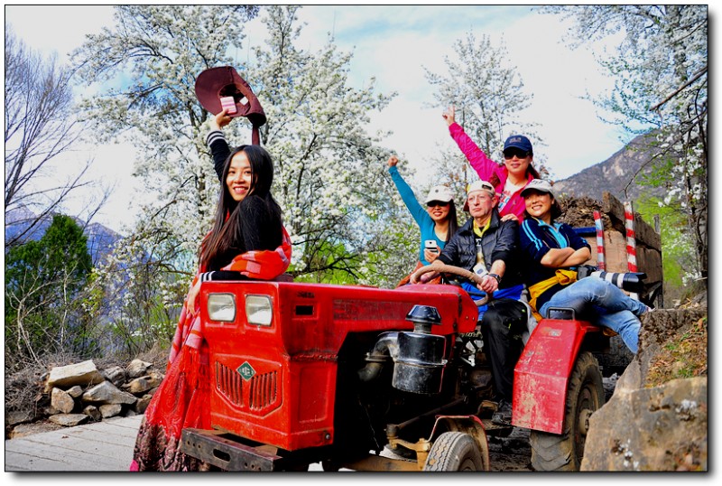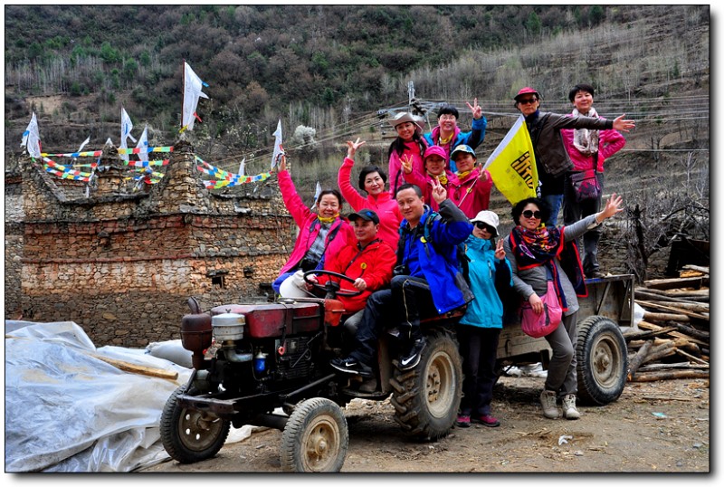 等待摄影团拍官寨的时候,我们也不能嫌着,就地玩起了拖拉机