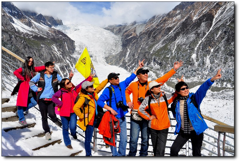 上面是雪山,下面是冰川,大家忍不住犯起了二