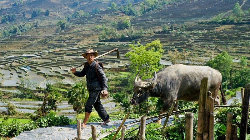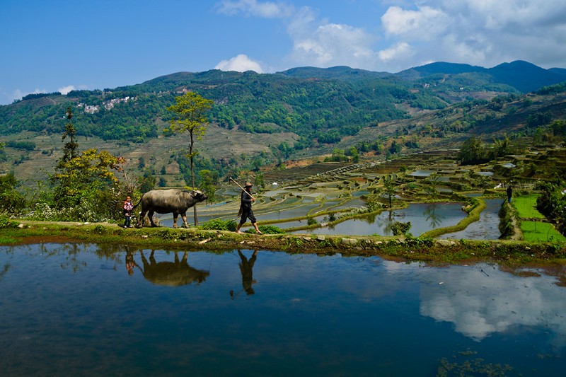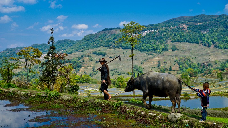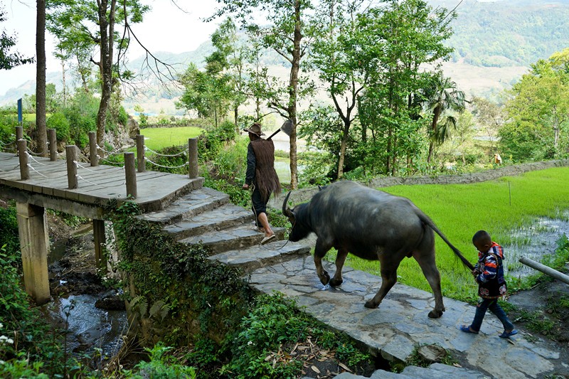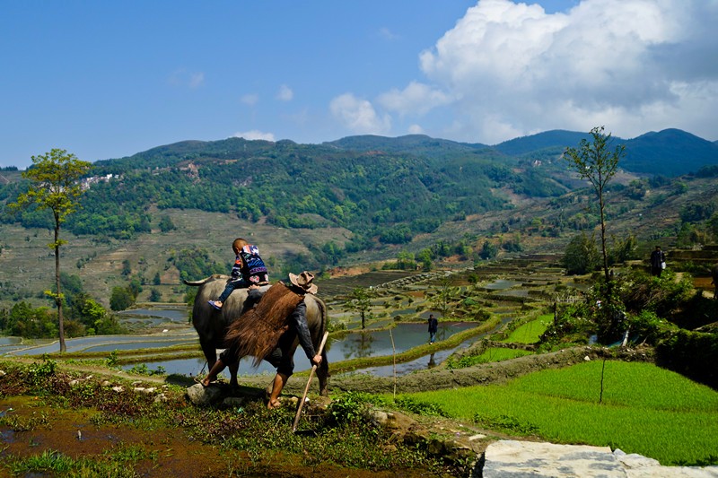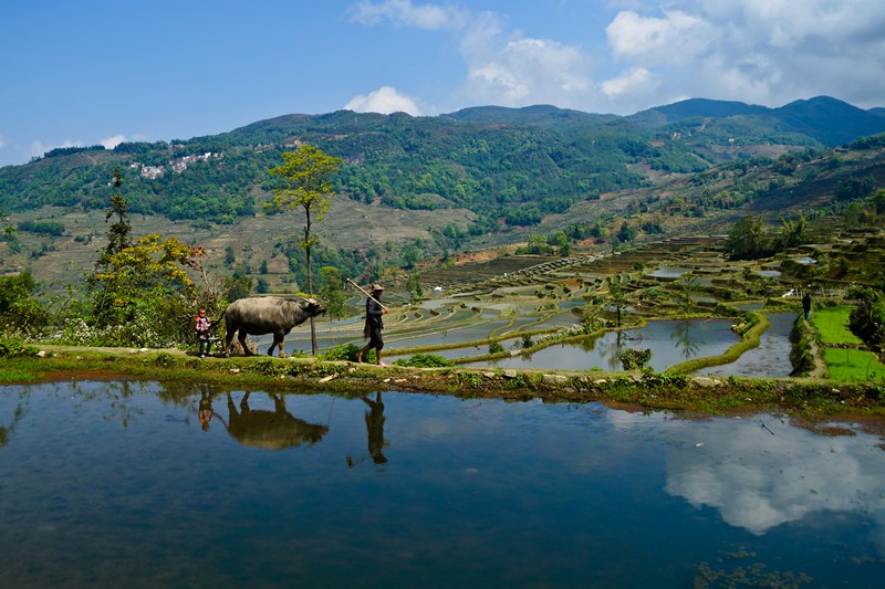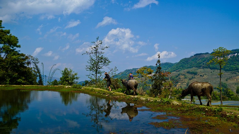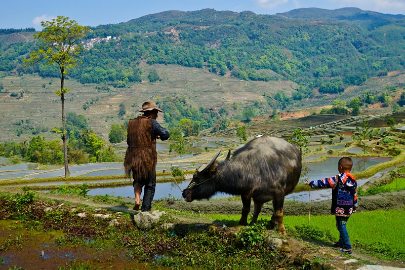 下午去了箐口村,感受了那里的风土人情。留下最深影响的就是那牛,那牵牛的农家人和他的儿子,感觉比我们都敬业。