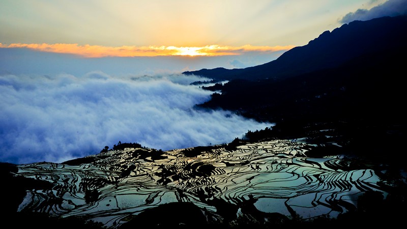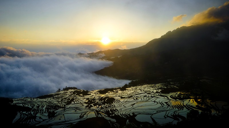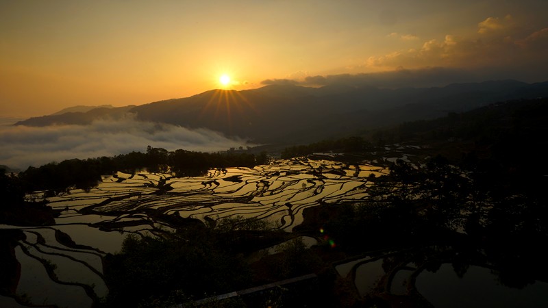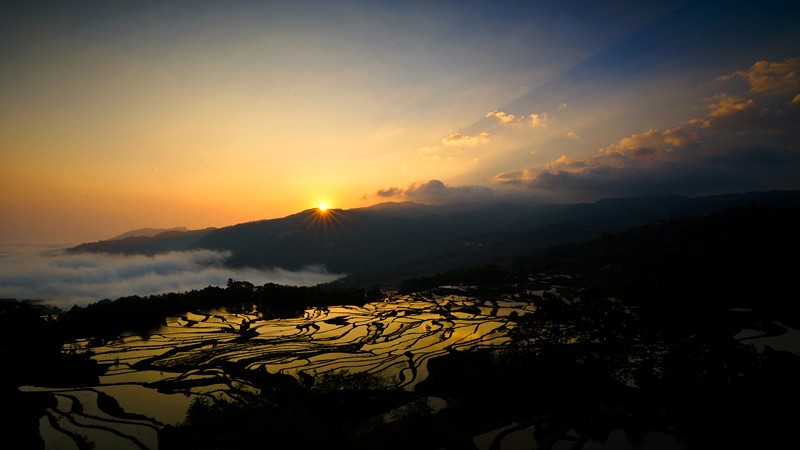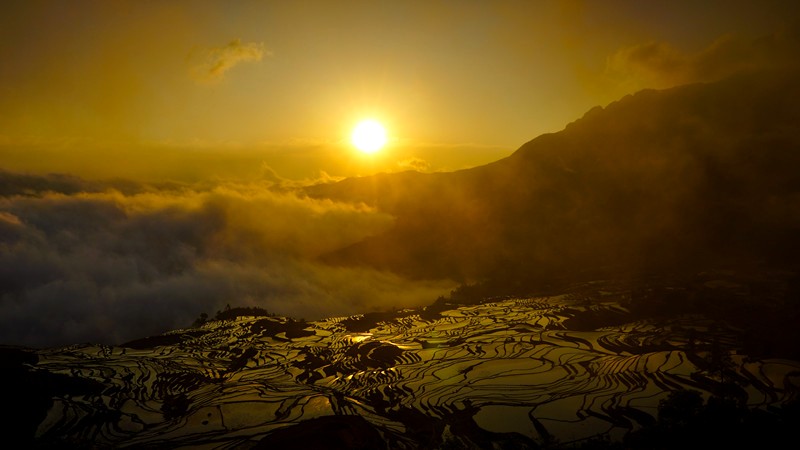 元阳已经是世界的元阳,连老外都很执着地等待,等待那日落的最后一刻。