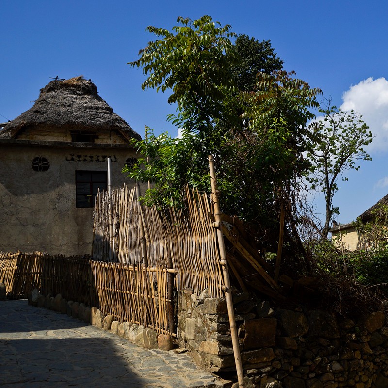 结束了坝达拍摄,回到宾馆,一会儿就起雾了。然后远处什么都看不见了,在宾馆窗口扫了一张。