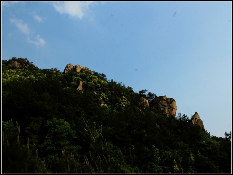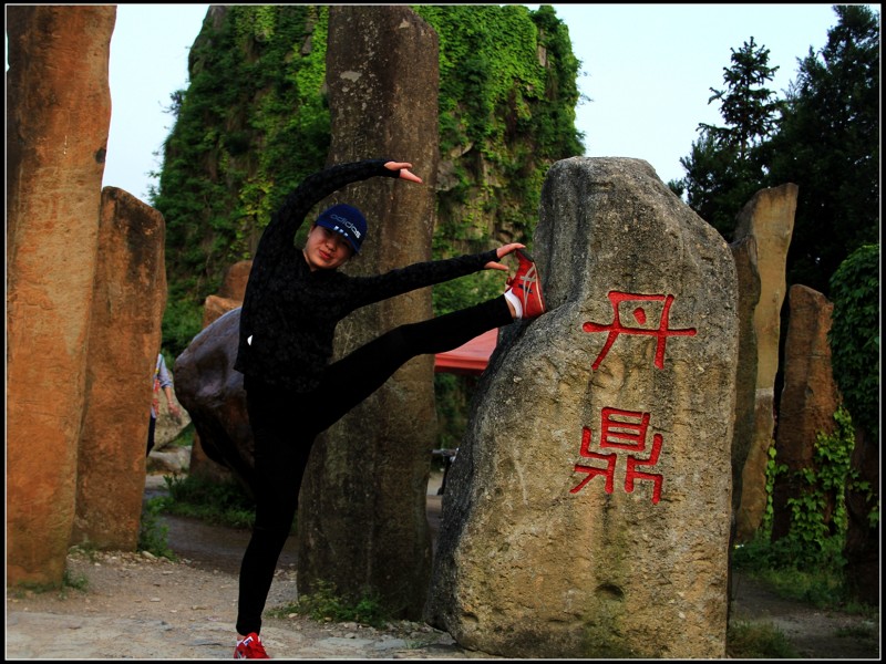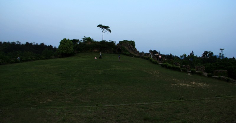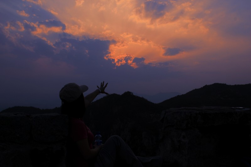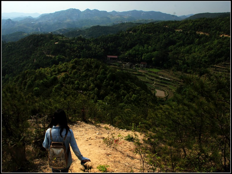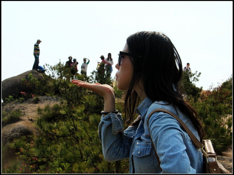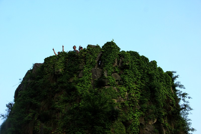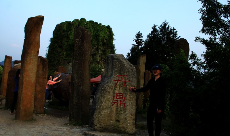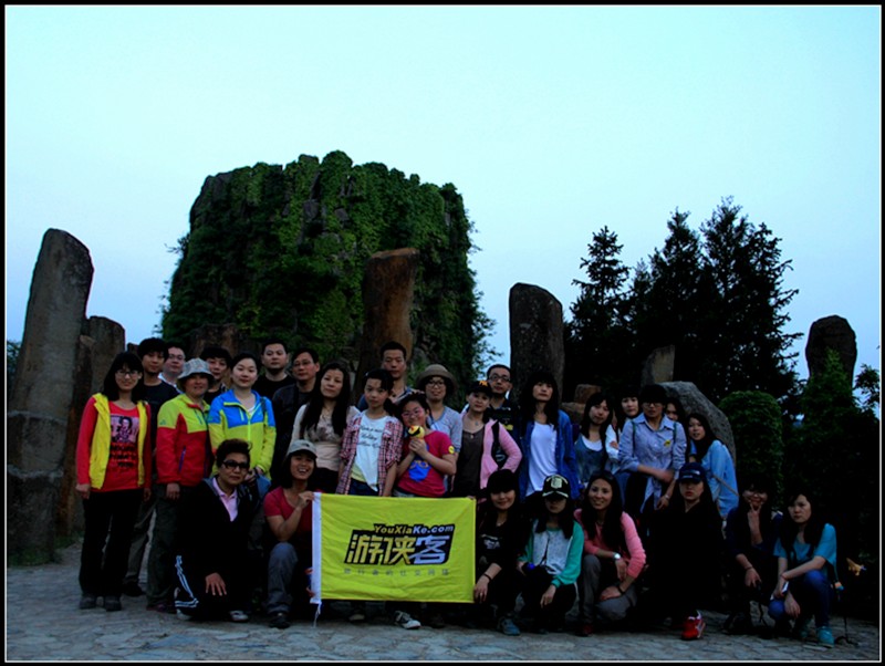这是一次奇妙的旅程,赶上了五一头一波堵车的行列,亲身参与到全国上下一片堵的氛围中,需要上图吗?亲,你们都懂的。说好的三个半小时成了五个多小时,其实还是不错的,毕竟咱么要走的可是上三高速。头一回发现这样的路程不长,充其量一个上下坡的野外路线有那么多岔路,要没向导带路,这都不知道去哪里了,谢谢我们的向导浙新。这是一次我陪着中国美院四美女和另一个领队小螃蟹陪着其余队员前后永远拉开距离的旅程,挺佩服这四个女孩子,穿着不靠谱的平底鞋——只是针对这样的山路而言,走在城市里是休闲范——艰难的走完全程,偶尔有抱怨,一直在努力,如果是发个微信,还请点上128个赞,拍起集体照和个人照,从来不走寻常路,要找的是另一种属于年轻的美。好赶不赶,当我们终于走到琼台仙居景区后部时已经微暗,为了大家的安全改为提前走出,然后从景区正门进去——此时连景区工作人员也下班了——却给我们遇上了美妙的山顶落日,引来无数赞美,耶稣光在远方透下光辉,美丽不可方物。