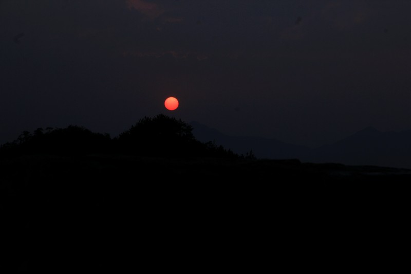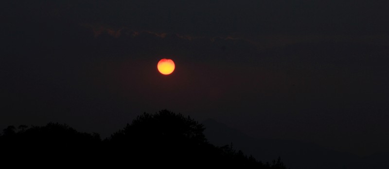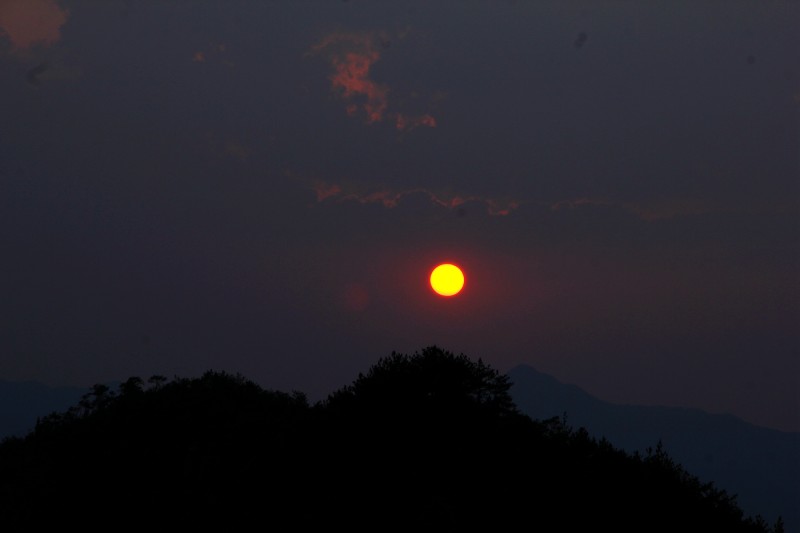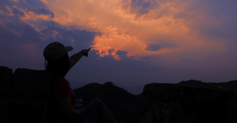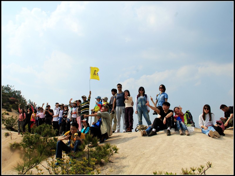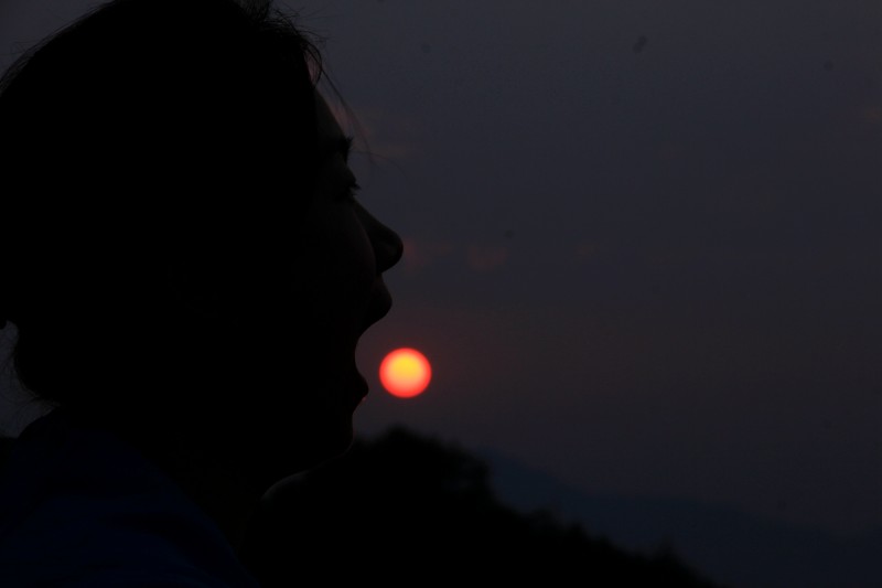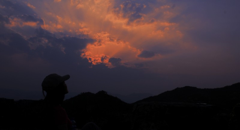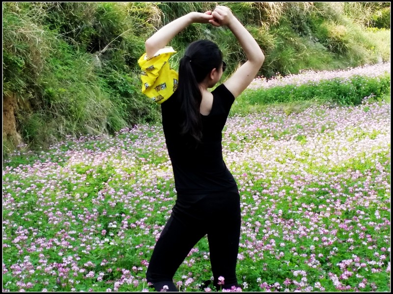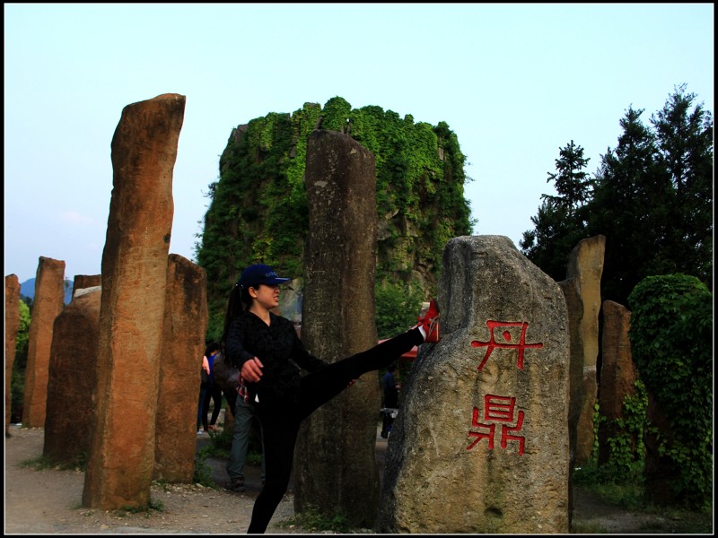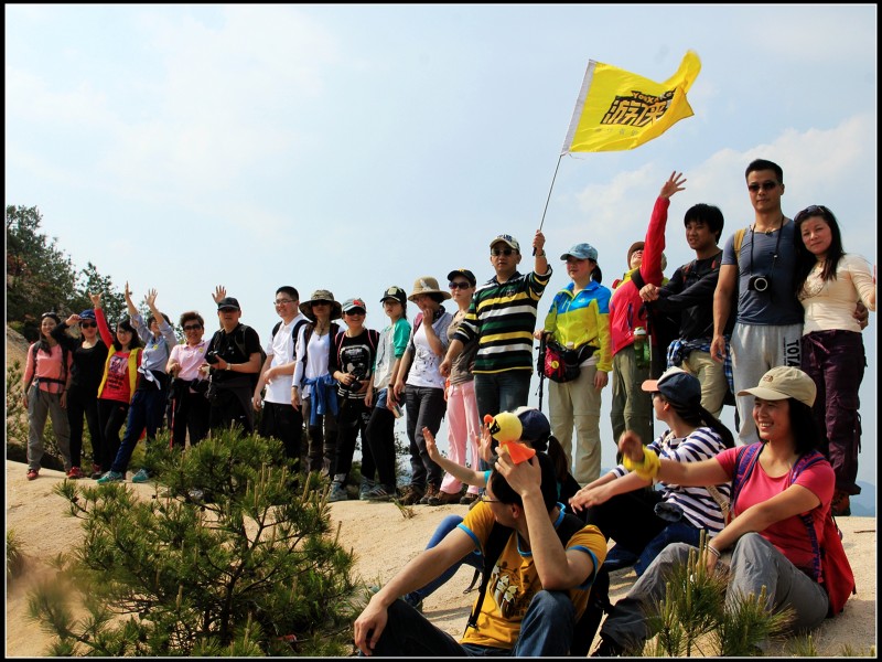 这是一次奇妙的旅程,赶上了五一头一波堵车的行列,亲身参与到全国上下一片堵的氛围中,需要上图吗?亲,你们都懂的。说好的三个半小时成了五个多小时,其实还是不错的,毕竟咱么要走的可是上三高速。头一回发现这样的路程不长,充其量一个上下坡的野外路线有那么多岔路,要没向导带路,这都不知道去哪里了,谢谢我们的向导浙新。这是一次我陪着中国美院四美女和另一个领队小螃蟹陪着其余队员前后永远拉开距离的旅程,挺佩服这四个女孩子,穿着不靠谱的平底鞋——只是针对这样的山路而言,走在城市里是休闲范——艰难的走完全程,偶尔有抱怨,一直在努力,如果是发个微信,还请点上128个赞,拍起集体照和个人照,从来不走寻常路,要找的是另一种属于年轻的美。好赶不赶,当我们终于走到琼台仙居景区后部时已经微暗,为了大家的安全改为提前走出,然后从景区正门进去——此时连景区工作人员也下班了——却给我们遇上了美妙的山顶落日,引来无数赞美,耶稣光在远方透下光辉,美丽不可方物。