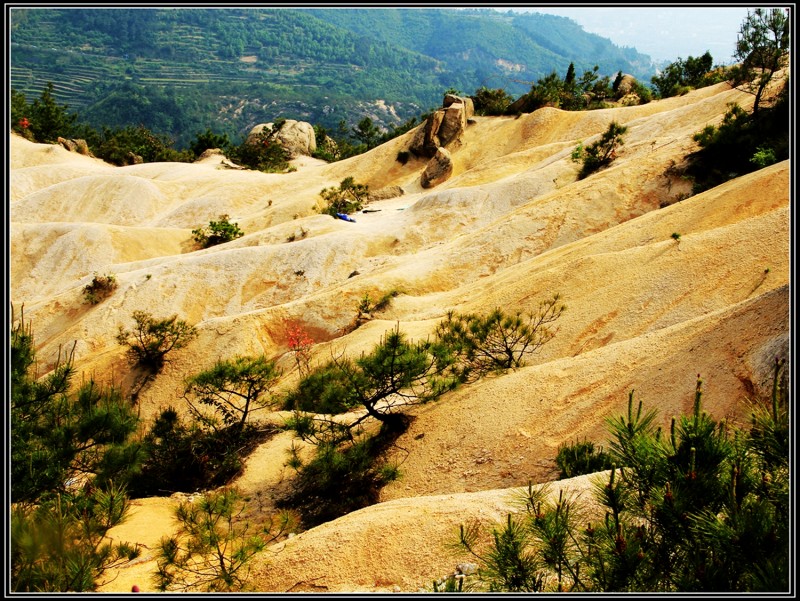 这里的山顶沙坡地形比较独特,想来先到的小伙伴们滑沙是玩的好爽的