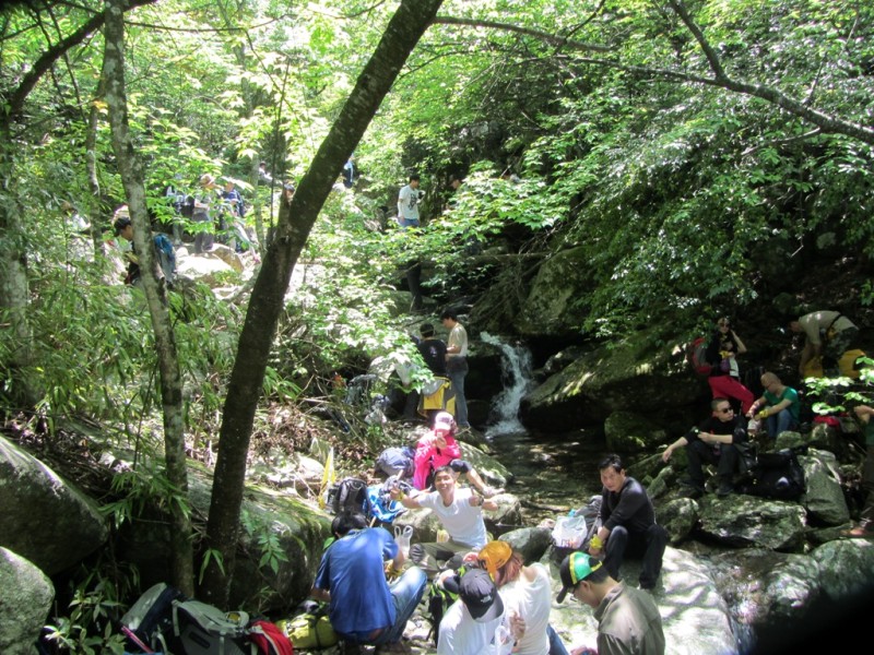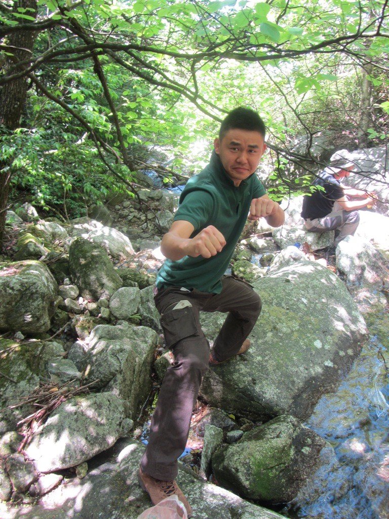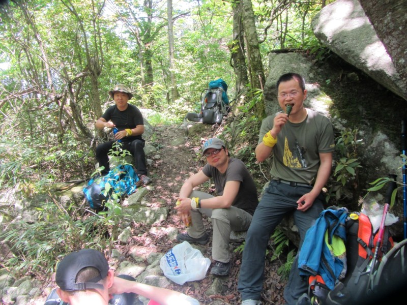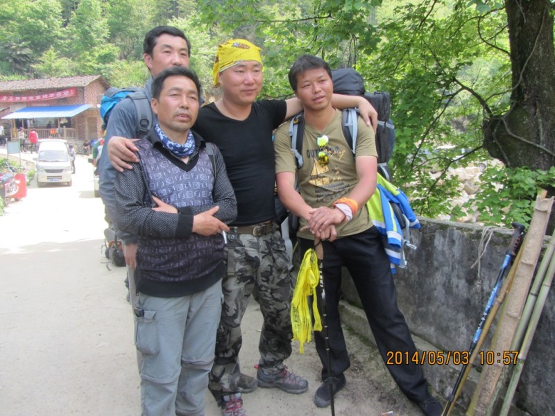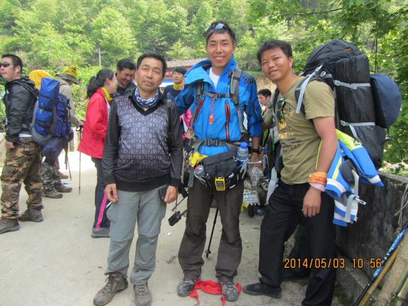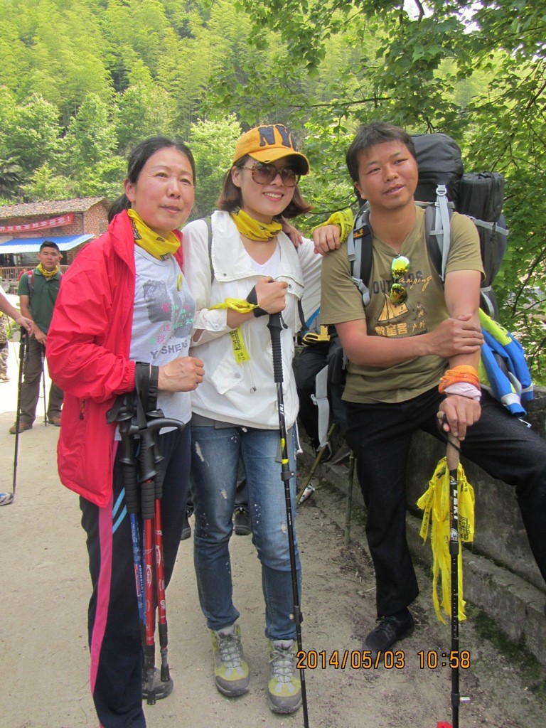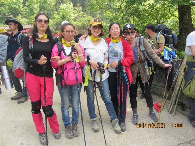 第二天5月1日行程:沈子村---九龙山---铁蹄峰。上山的征途刚刚开始,山路陡峭,腿越来越沉,心脏似乎要蹦出来了。在坚持和放弃的一念之间,你选择了坚持,也就选择了胜利,Desprado你懂的。小伙伴有我一直陪在你左右,你不会失去信心,不会迷失方向,坚持再坚持,山峰最终被你踩在脚下,感谢你自己吧,你是一个强者!