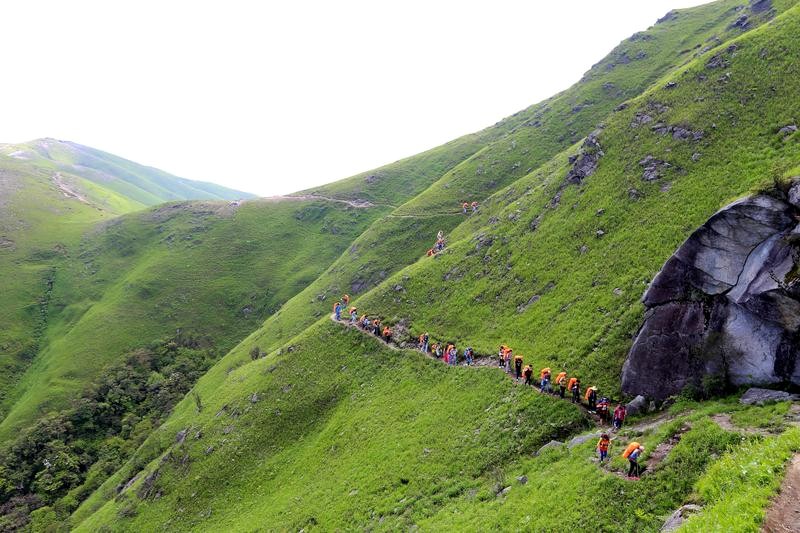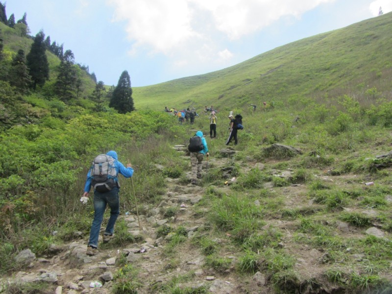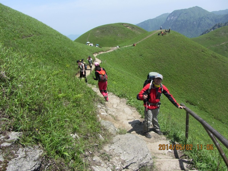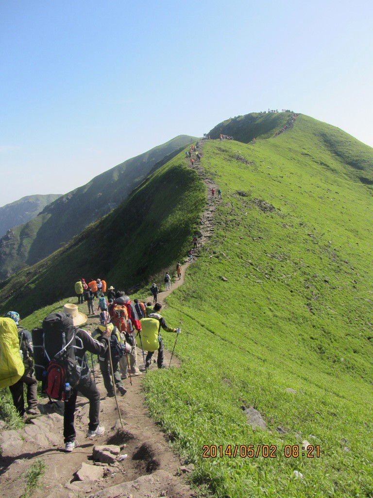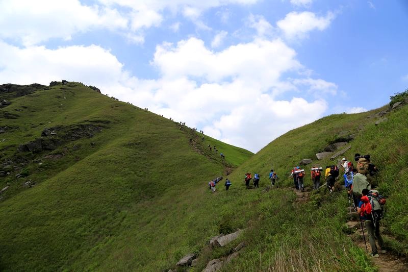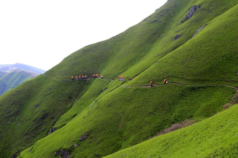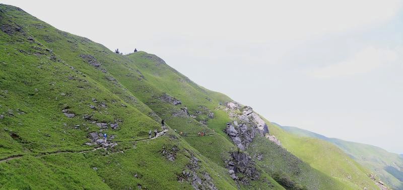 第三天的行程,铁蹄峰---大草甸---绝望坡---发云界,一路上走在山脊或崖壁上,满目翠绿、心旷神怡,小伙伴们一路上有你,不觉得累......
