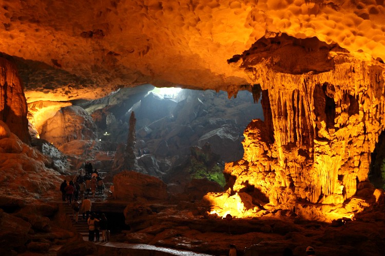 下龙湾的溶洞也很有特色,那千奇百怪的钟乳石,你把它想象成什么都行。
