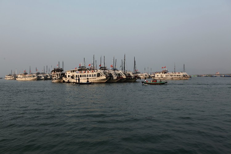 越南的天空也不怎么洁净,下龙湾的日出像睡意朦胧的人儿叫人看不真切。