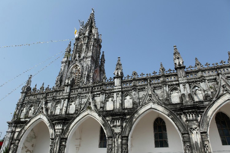 路过茶古半岛的天主大教堂,我们一个个欢呼雀跃、下车留影。这个有着百岁经历的教堂,确实有点大。从外观看,岁月留痕,整个教堂布满了沧桑。若好好修缮,不失为一座比较雄伟壮观的建筑。