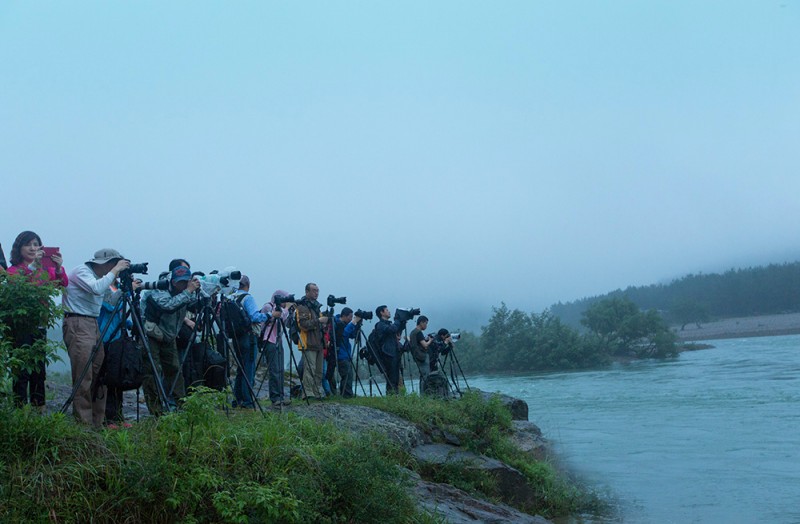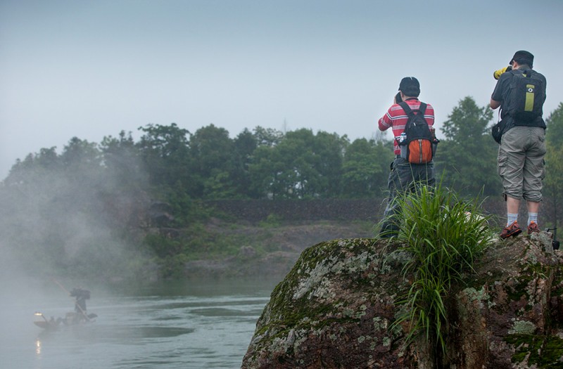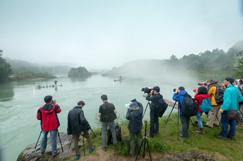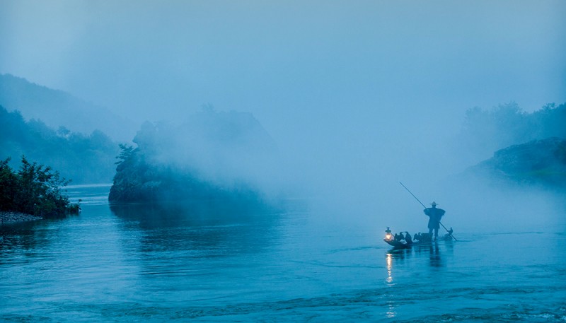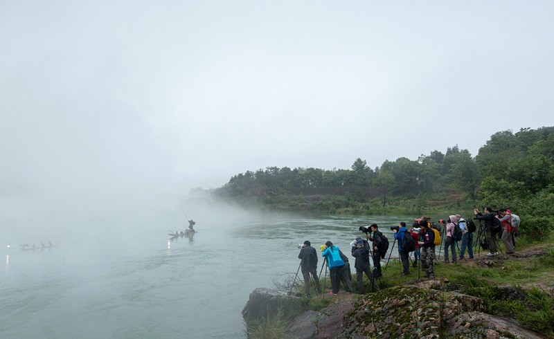 因为连日的阴雨,使得楠溪江狮子岩看不到日出,水位的增大,使得渔船无法停靠在最佳位置,辛苦了渔夫周师傅