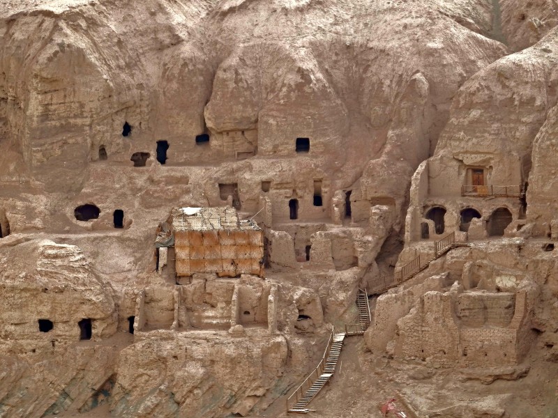 吐峪沟千佛洞,始凿于晋代,延续于唐代,晚期开凿于回鹘高昌时期。如今洞还在,佛却已被德国人冯·勒柯克盗窃一空。