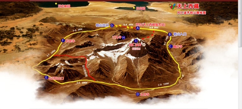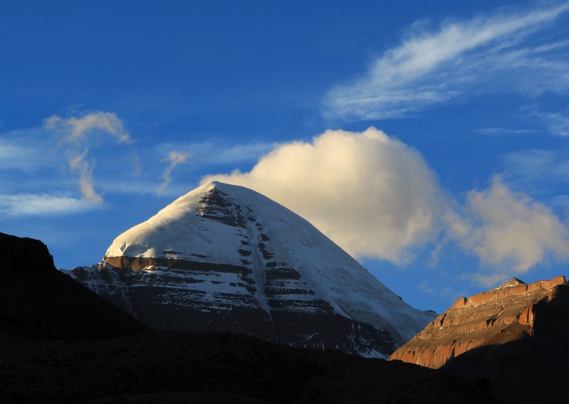 冈仁波齐峰通称雪灵山,为著名的佛教圣地之一。在玛旁雍错之北,峰顶四季冰雪覆盖,山峰四壁对称,呈圆冠金字塔状,峰上空常常白云缭绕,愈发显得神秘莫测。转山一圈距离为51公里,周围有八座寺庙。冈仁波齐是世界公认的神山。冈仁波齐并非这一地区最高的山峰,但是只有它终年积雪的峰顶能够在阳光照耀下闪耀着奇异的光芒,夺人眼目。该峰四壁分布极为鲜明对称,形似圆冠金字塔(藏民称像“石磨的把手”),特殊的山形与周围的山峰迥然不同,让人不得不充满宗教般的虔诚与惊叹。