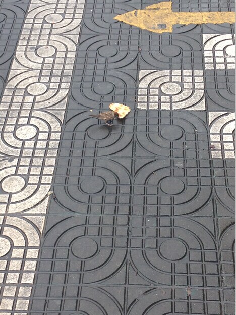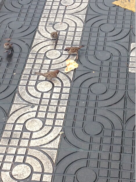 清晨早起,大雨过后的街道,略显寂寞。麻雀们运气不错!