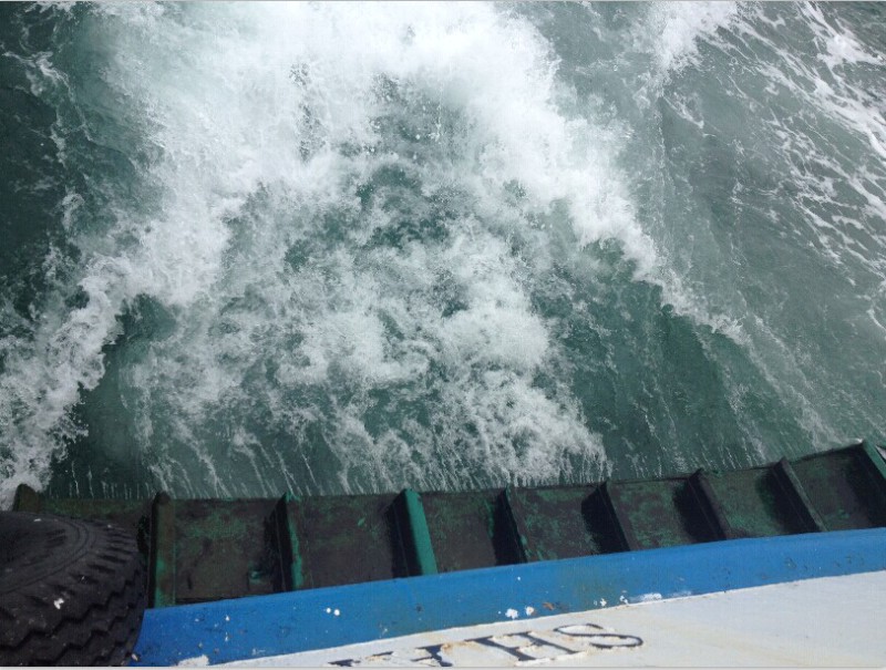 不知不觉中,海水居然变成了蓝绿色,我们接近了青浜岛。蔚蓝大海之旅正式开始!