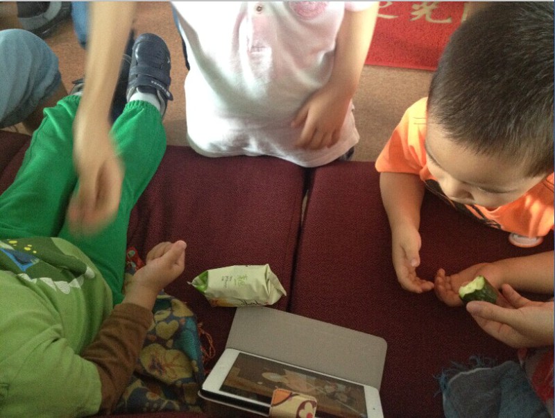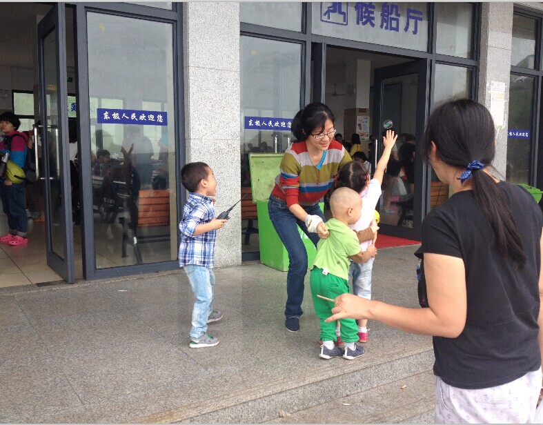 三个小宝贝绝对可以评上最乖宝宝了,在船上不吵不闹,互相谦让着一起玩。不得不说说薯片的故事。妈妈说,要先吃黄瓜;小家伙们说,要先吃薯片。妈妈放一包薯片在三个人中间,谁先吃完黄瓜谁就可以吃薯片。(当大人真好!离长大还有7000多天,哎,人生好辛苦喔!)
