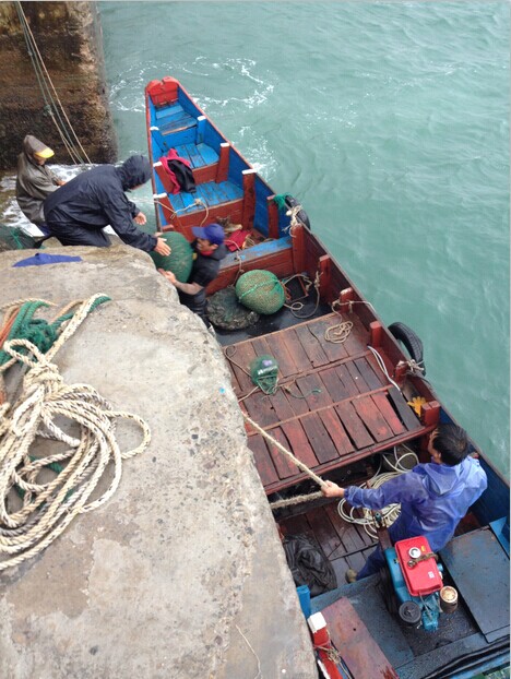 遇到早上归来的打渔船。