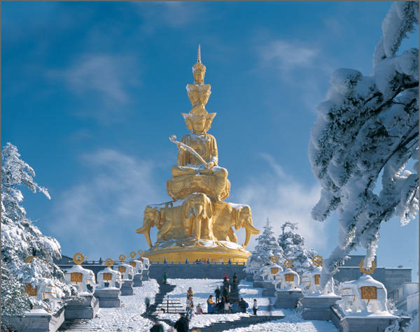 ★峨眉山——峨眉山位于中国四川省峨眉山市境内,与山西五台山、浙江普陀山、安徽九华山并称为中国四大佛教名山。亦有“峨眉天下秀”之称,是一个集自然风光与佛教文化为一体的中国国家级山岳型风景名胜区。峨嵋山为普贤菩萨道场。