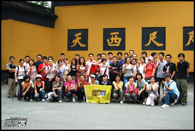我们在灵隐大门口,“咫尺西天”下的合影!