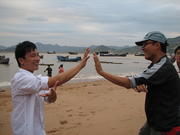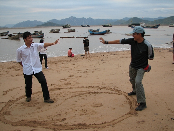 队里有两位摄影爱好者告诉我,在不远的地方有东壁村可以拍日落,结果等我们大家一起前往的时候,貌似太阳全部被厚云遮住。不过没关系,在沙滩边上我们也自娱自乐了一把。