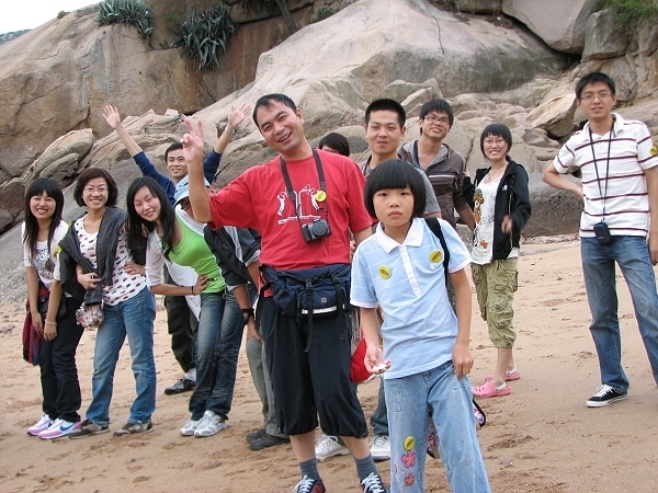 原本最后一天早上还要组织大家钻洞,但是很多人在前一天就把所有的景点都玩遍了,为了能早点回杭州,我们9点就离开了太姥山。不过。。。中途有人建议去牛郎岗的海滨浴场,激起了全体的响应。
