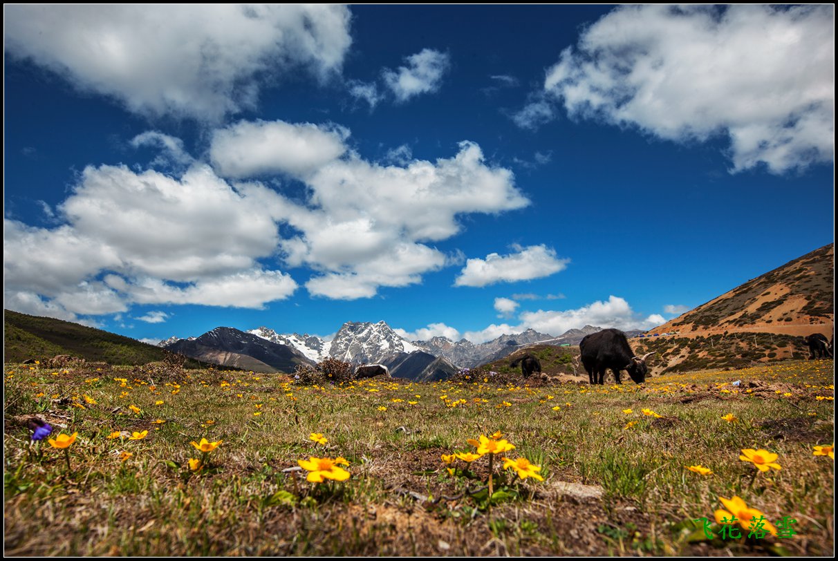 我们在海拔4292米的垭口朝觐这神秘的雪山,虽然不能近距离的融入雪山,透过镜头依然可以清晰地看到冰川的壮阔,山峰的秀奇,凝神那云飞雾绕的山谷,能感受到大山的莫测和神秘。灿烂的鲜花开遍了原野,将远处的雪山衬托的更加俊秀美丽,瞬间定格为美丽的永恒。