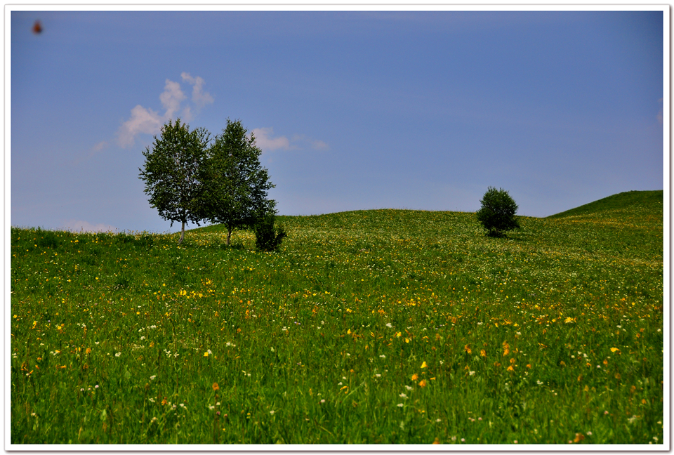 那蓝蓝的天,那白白的云,那青青的草,那灿灿的花,那随风四处飞扬的歌声,那纵马任意驰骋的身影... ... 想像中所有的一切都是妙不可言,仿佛梦中的草原是人世间难以找寻的桃源。草原梦的灵魂,就在于她的美丽和自由,草原能让我心驰神往的,也正在于此。