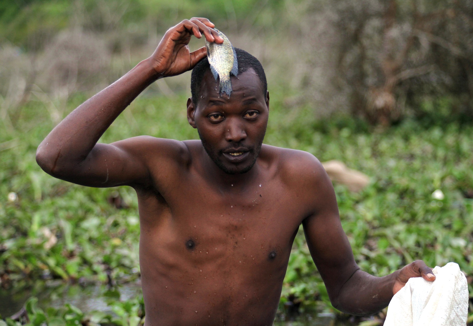 在那片最大的“水葫芦林”里,我们向光着膀子站在水里的抓鱼小伙买了三条非洲鲫鱼。这个活跃的黑人小伙子收下钱后,将鱼含在嘴里,露出一口白牙,向我们表演着无声喜剧。