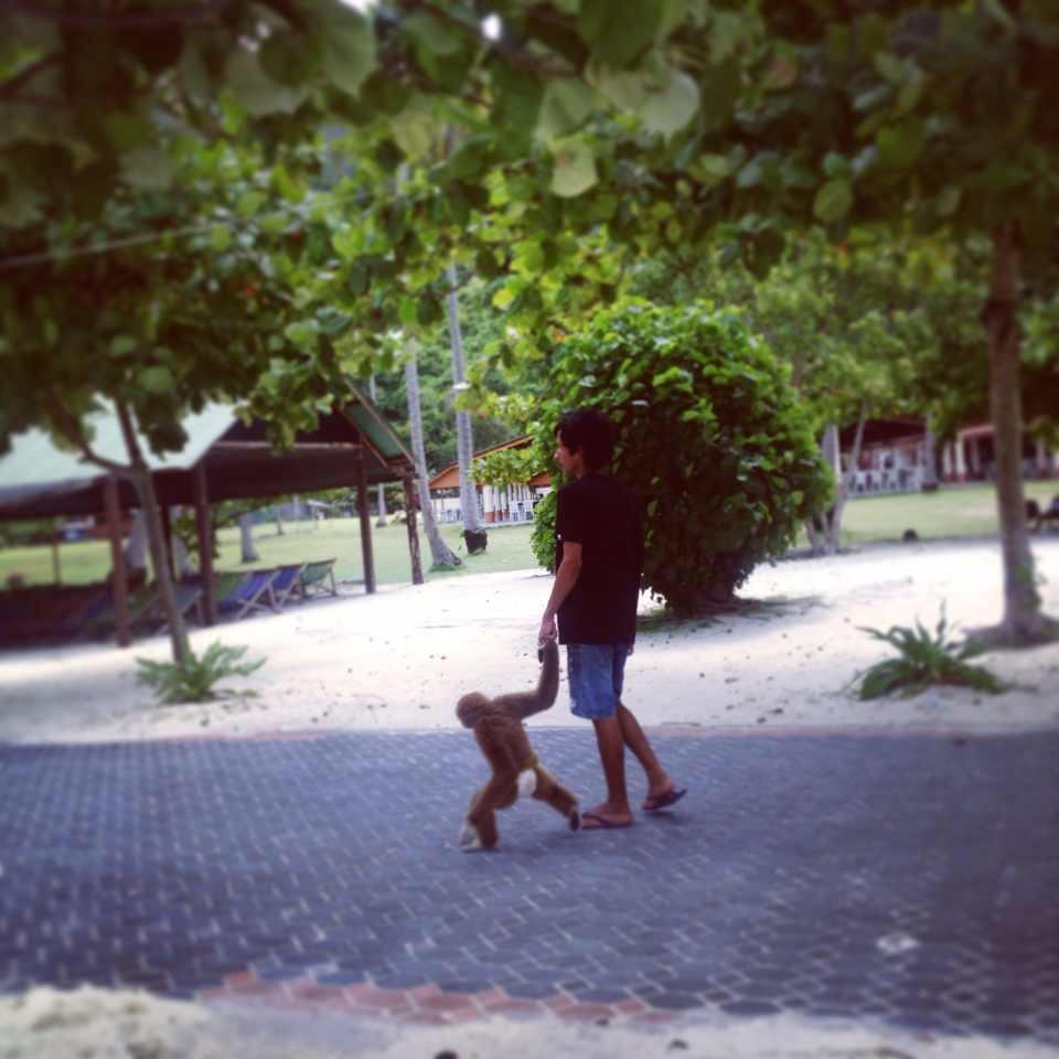 PP岛上会有这样的专门和猴子拍照的服务,当时忍不住抱了猴子一小下,属猴的总是要和同类来拥抱一下咯,牵猴人很友善,并没有向我收取费用。PP岛上逗留的时间并不多,随后便去了蛋岛,一转就能看到头,所幸租了个沙滩椅躺了一下午。快艇上的导游郭晶晶和choclate先生挺照顾我们,他们本是中国人,因TB业务跑来泰国当地陪,很是辛苦,尤其是choclate先生,光看他的肤色绝对一纯正泰国人,所以至今我还怀疑是不是他只是普通话说得比较好而已。哈哈。