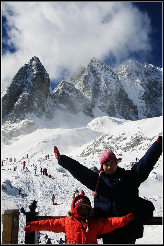 昨晚就想发,不知什么问题就是发不上去,郁闷了半天。今天回来了,赶快发原片。 途中,雪山近了,有些激动了。