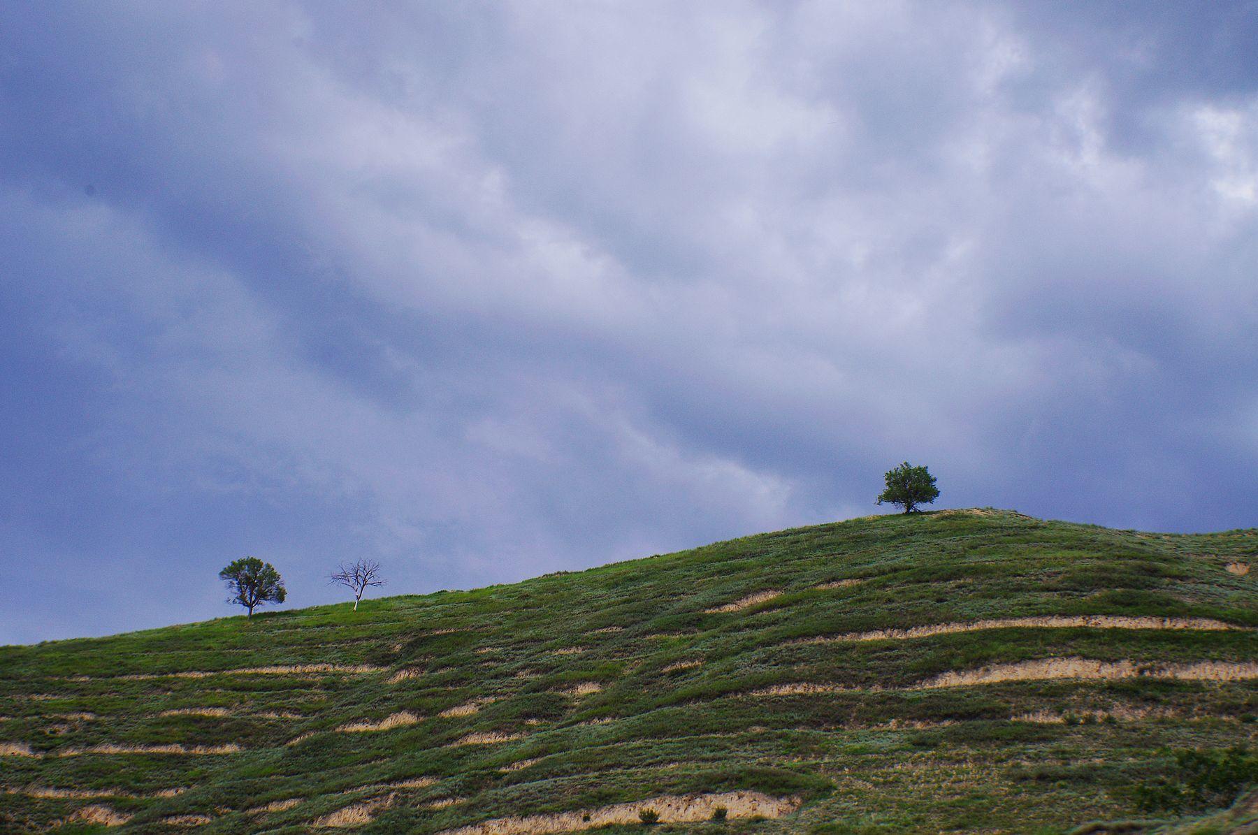 随后出天水,两边青山,满目翠绿,穿山入洞,好不快意。天河注水,安定西边。天水、定西,皆为陇中大地。天水往西,由绿变黄。车过甘谷,黄土高坡,素面朝天,皆如村妇老脸,偶有松柏苗木点缀其间。山岩裸露,一丝不挂。坐在车内观看,不像车在飞驰,倒像山在裸奔。偶见羊群匍匐山坡,无信天游,亦无秦腔飘过。