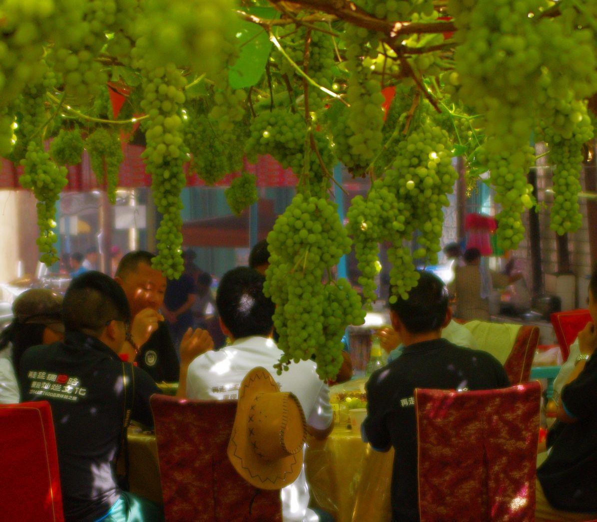 中午,在一葡萄庄园品尝葡萄并用餐。葡萄柔嫩多汁,甘甜爽口。民族美食,色香俱全,回味无穷。