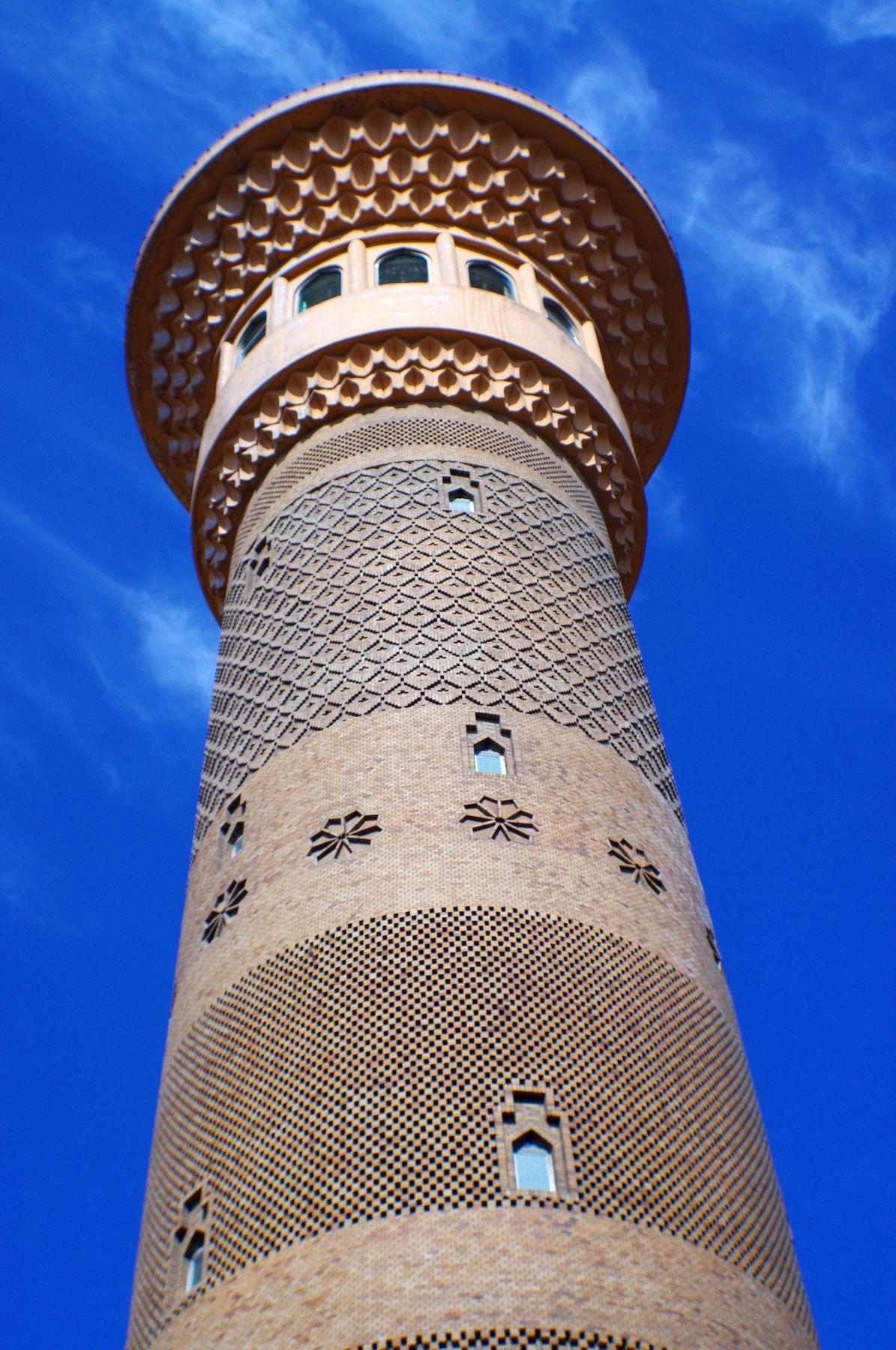 远观苏公塔,拔地而起,直插蓝天,伟岸醒目,古朴大方,别具一格,庄严巍然,颇具浓郁伊斯兰风格。