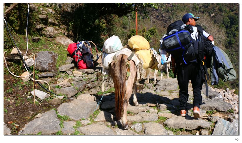 很幸运的,走了两个农舍,就找到了这个背夫,很善良,不会说英语,更不用说中文了。每次见到我都是微笑微笑微笑.....你存在,我深深的脑海里(唱~!),三天的时间,虽然没有太多的交流但是他真是一个好人。