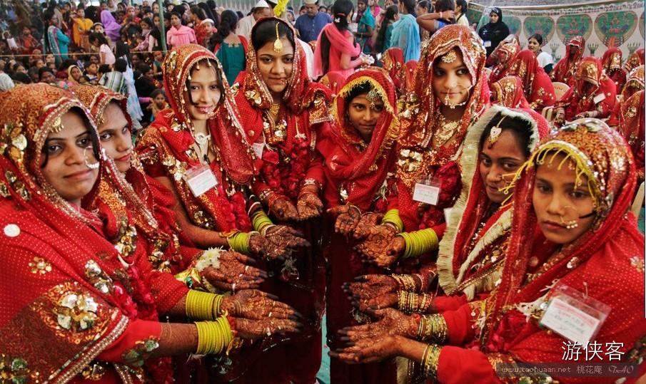 △印度传统婚礼上姑娘们的服饰,真的是把最值钱的都穿到了身上!
