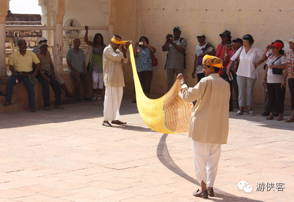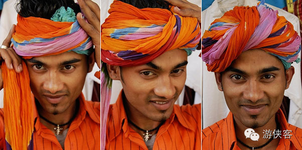 △在一些旅游景区,有印度男人会给游客演示如何把2-3米长的头巾包在头上。