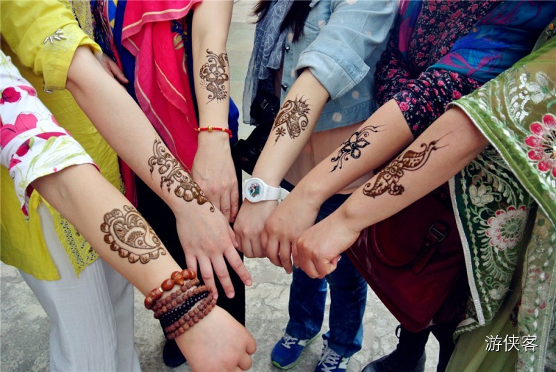 印度旅行,必不可少尝试穿着沙丽,画Hanna,也可以购置手环戴在身上美美哒!