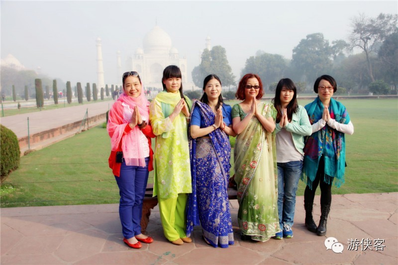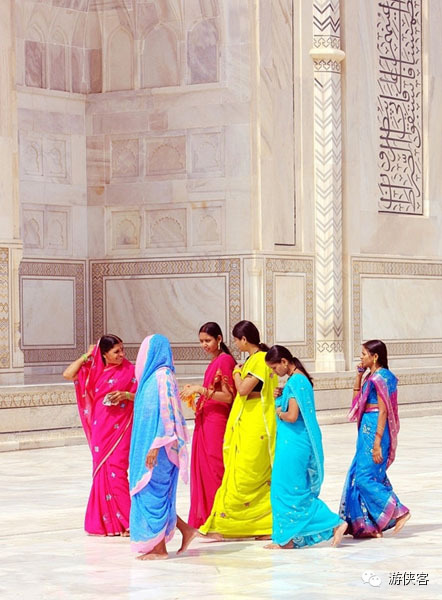 △楼主暗戳戳地自爆一下,在印度可以买到很多漂亮的民族风的布,游小编身上的这“块”裙子其实只是一块布裹在身上,在泰姬陵穿还是蛮合适的,拿回国也会时常穿,若是不穿还可以当围裙或者桌布,反正用途很大!