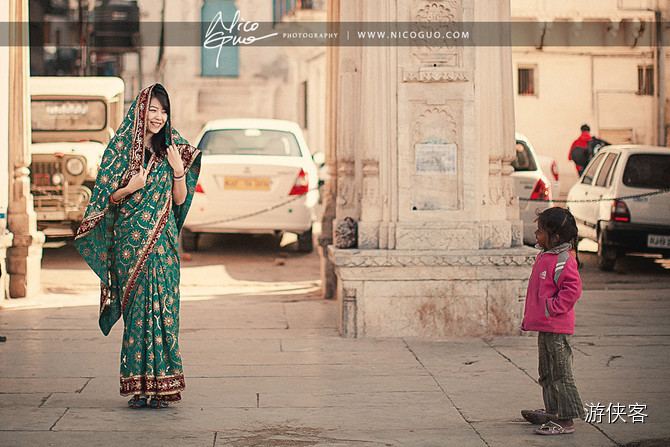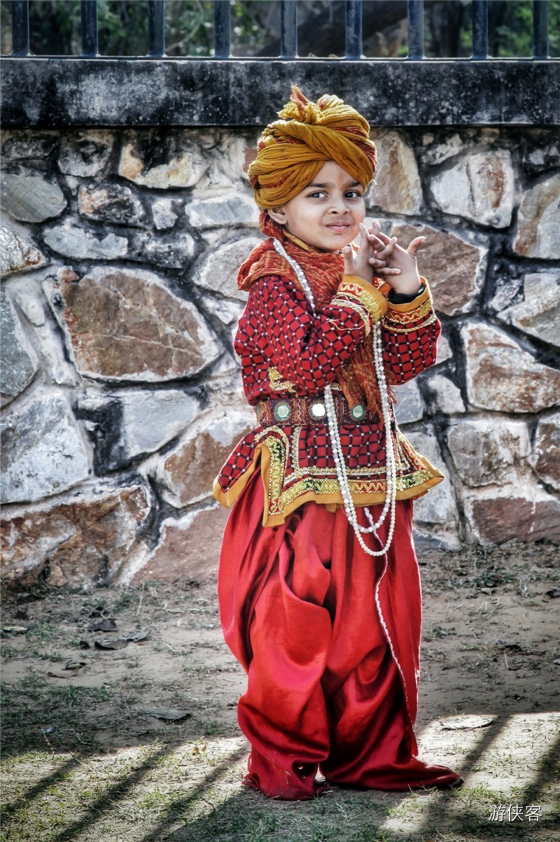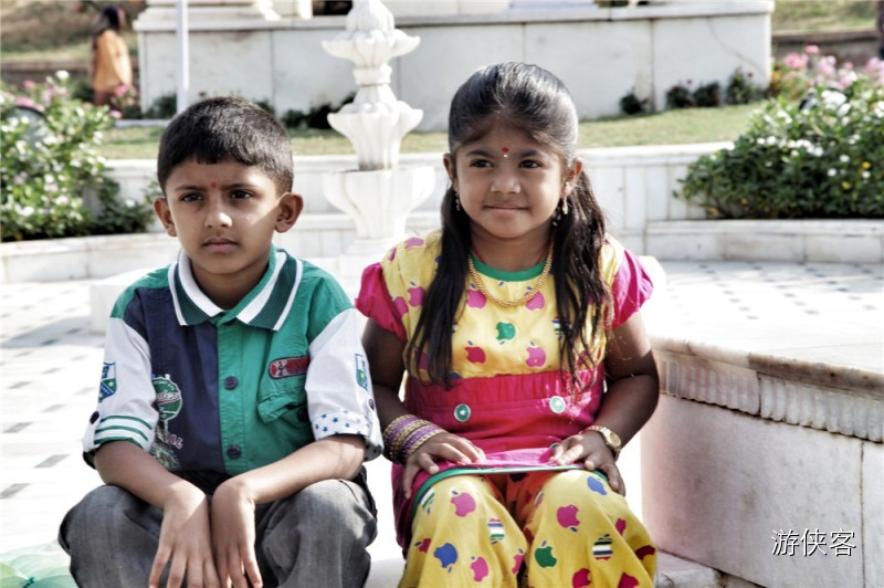 △印度当地小朋友,额头上的小红点是喜庆吉祥的象征,到印度的一些城堡里你也可以点一点沾沾喜气~