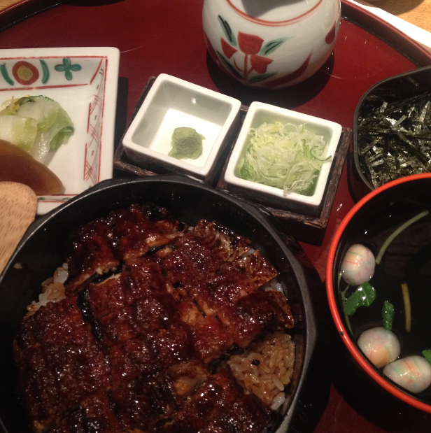不巧的是正好是周日,大名鼎鼎的野田岩鳗鱼料理居然休息,作为吃货自然是不甘心的,跑去另一家分店,也被告知不营业,欲哭无泪啊,只好找了另一家鳗鱼料理点告诫一下受伤的小心灵~