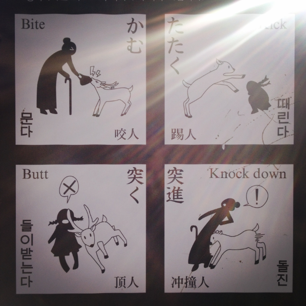 奈良公园的草坪边有快注意告示牌,画的好可爱~