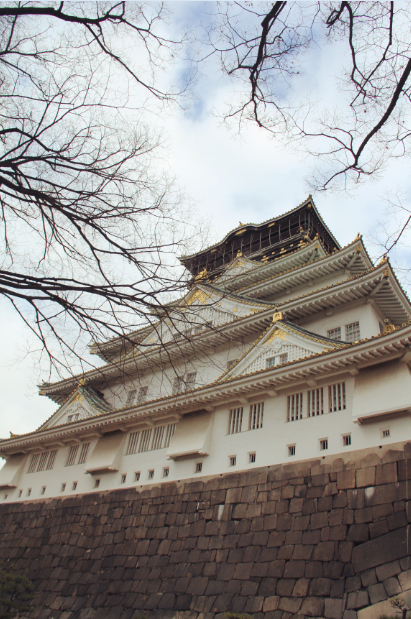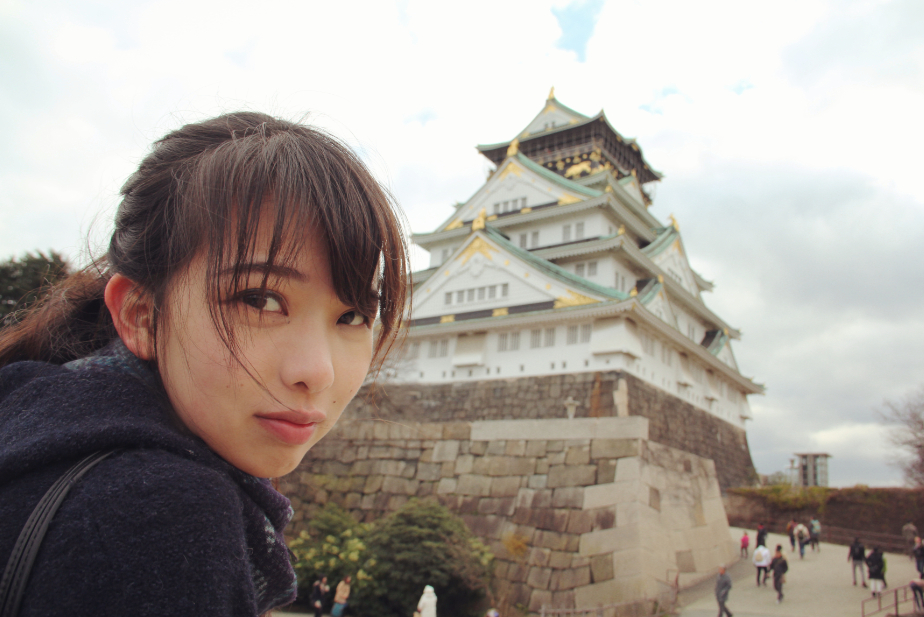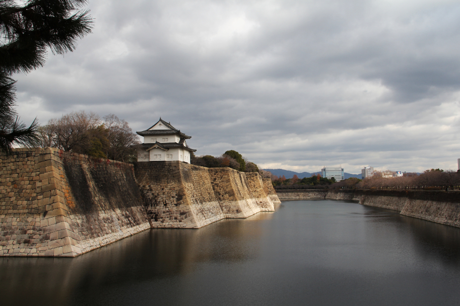 大阪城公园的外墙是大大的石块堆砌的高高围墙,浓密的乌云更是增添一封沉重的历史感