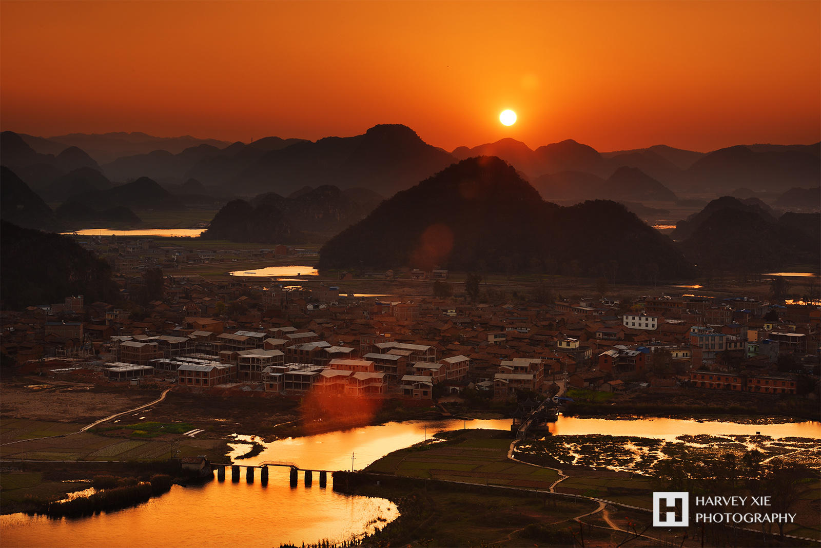 罗平的晨曦。远处出现了鱼肚白,天慢慢亮了,阳光从地平线漏出来,穿过油菜花海,穿过缕缕炊烟。大地被唤醒,强烈的山影打在油菜花田上,通透,震撼!