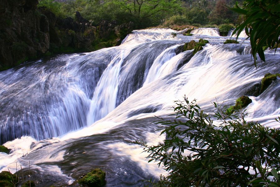 隆重登场!早上还是浓云密布,大家都默默祈祷,上天听到了我们的祷告,午饭后居然开出了很好的阳光!蓝天那个白云,拍起照来都有劲道,在最大的黄果树瀑布那儿,还见到了彩虹哦,又谋杀了好多菲林,开心一百分!83版《西游记》片尾出现的瀑布哦~小时候曾对水帘洞无限神往,这下满足了我的心愿,从水帘洞里往外拍,真的很神奇的赶脚内~用头巾护着相机,撩出来拍一张,赶紧遮起来,水花飞溅啊,好刺激地说。