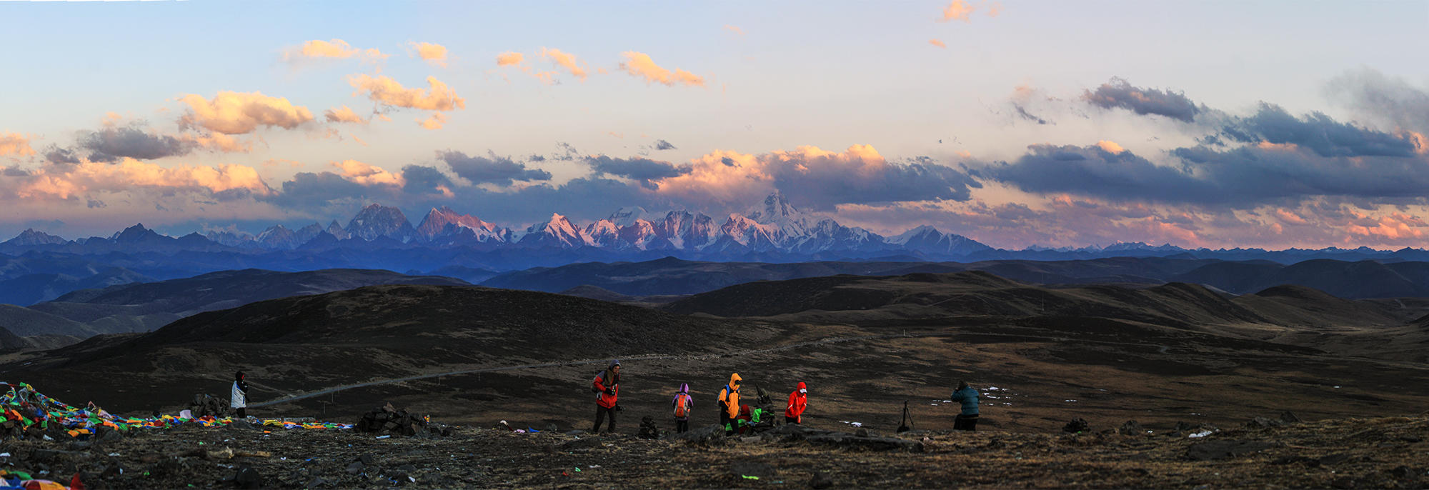 登上黑石城的玛尼堆,观木雅贡嘎日照金山