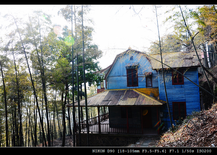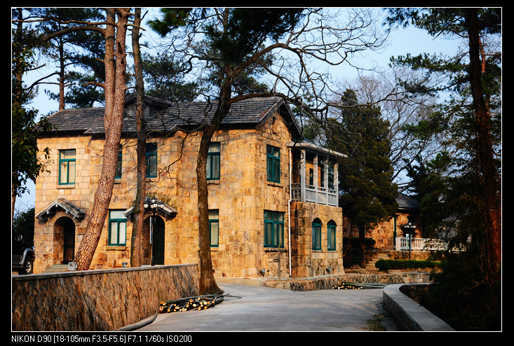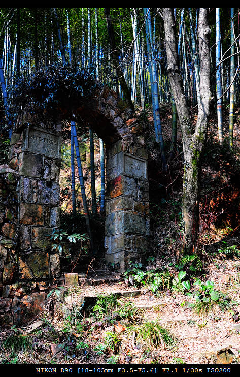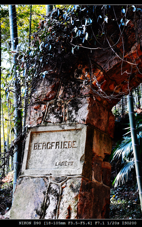 天高气爽,曲径通幽,冬登避暑名山,别有一番情境。从上官古道上山,看到的第一个人文景观“小凯旋门”。门廊上写着难懂的单词,GOOGLE后发现应该是与德国或俄国有关的。看来里面的小路应该是通向一栋古老的洋别墅。
