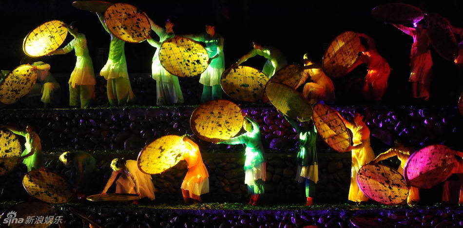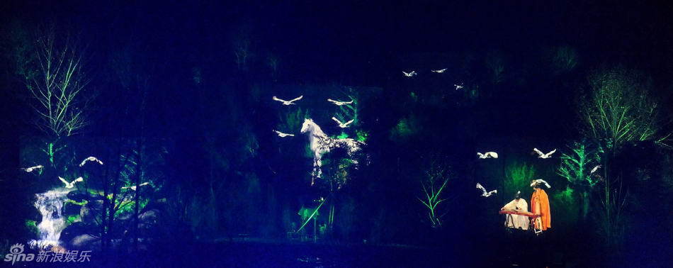 另一个让人叹为观止的是实景电影。它是以真实的山水景观为放映空间,在大自然的草木中,在人眼可接受的视觉宽度内,完美融入15块电影屏幕,多媒体技术与自然山水交融得天衣无缝。樊跃称,3年前就有了这样的想法,“我们把多媒体放到大自然里,更深层地思考人和自然的关系,可以说颠覆了传统的表演方式,是突破传统意义的节目编排。”王潮歌说:“我可以不夸张地说,这是全世界最大的电影剧场,而且,完全融于大自然当中,也就是完全融于真实当中。3D是好莱坞伟大的革命,但3D依旧是在造假,而实景电影是创造了电影最真实的东西。”
