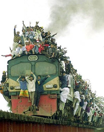 中国的春运总是大规模,就像每年一次的打战一样。不过和印度比起来,还真是小儿科。