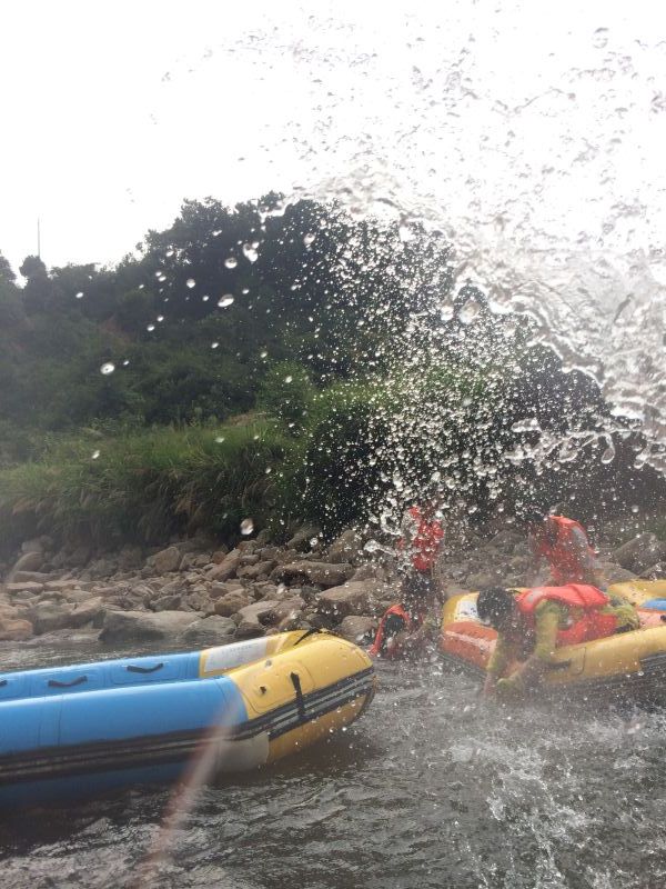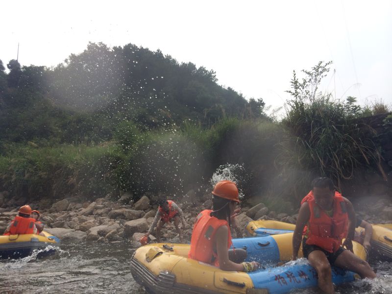 随着一路的欢声笑语,大家来到了柏坑漂流点。